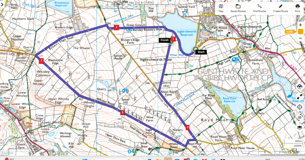 The Course is left handed, you will be directed at each junction by marshals on the course. A lead car will direct the lead runners. Please keep to the left unless instructed by marshals at the only right turn on the course. The course is a flatter start following the reservoir on your right. It then climbs for about 1.4 miles before turning left at the junction of Brown’s Edge Road and Whitley Road. The next 1.8 miles is along the ridge that is Whitley Road, the course starts to go downhill as you approach the windmills on your left. At 3.75 miles the route turns left up Royd Moor Hill to the view point on your right. You will then be directed left down Spicer House Lane before turning right down Annat Royd Lane. It’s then a fast half mile downhill to the finish on the elbow of Annat Royd, before you reach the reservoir at the bottom of the hill.